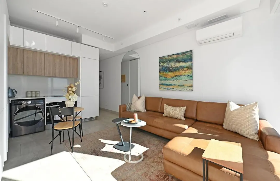 This apartment has a fully equipped kitchen, and comforts such as an air conditioner and a washing machine.